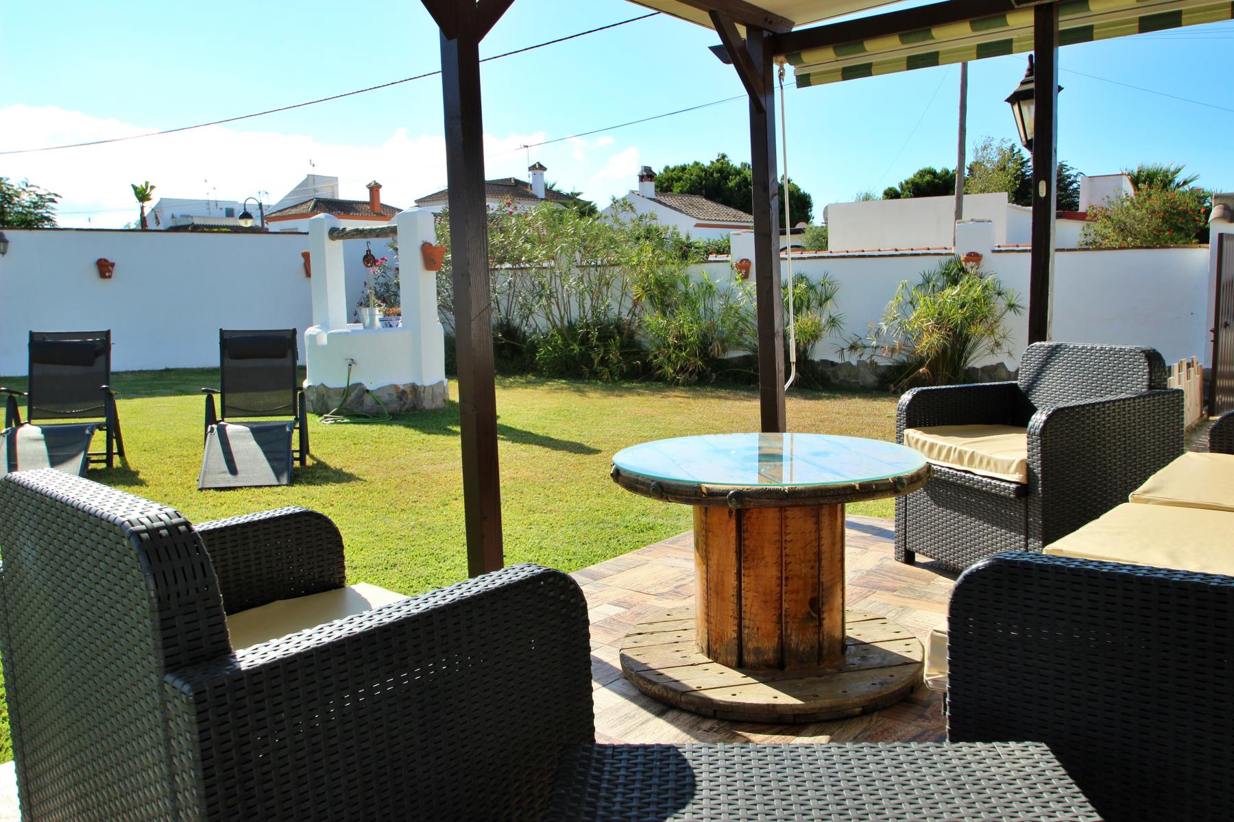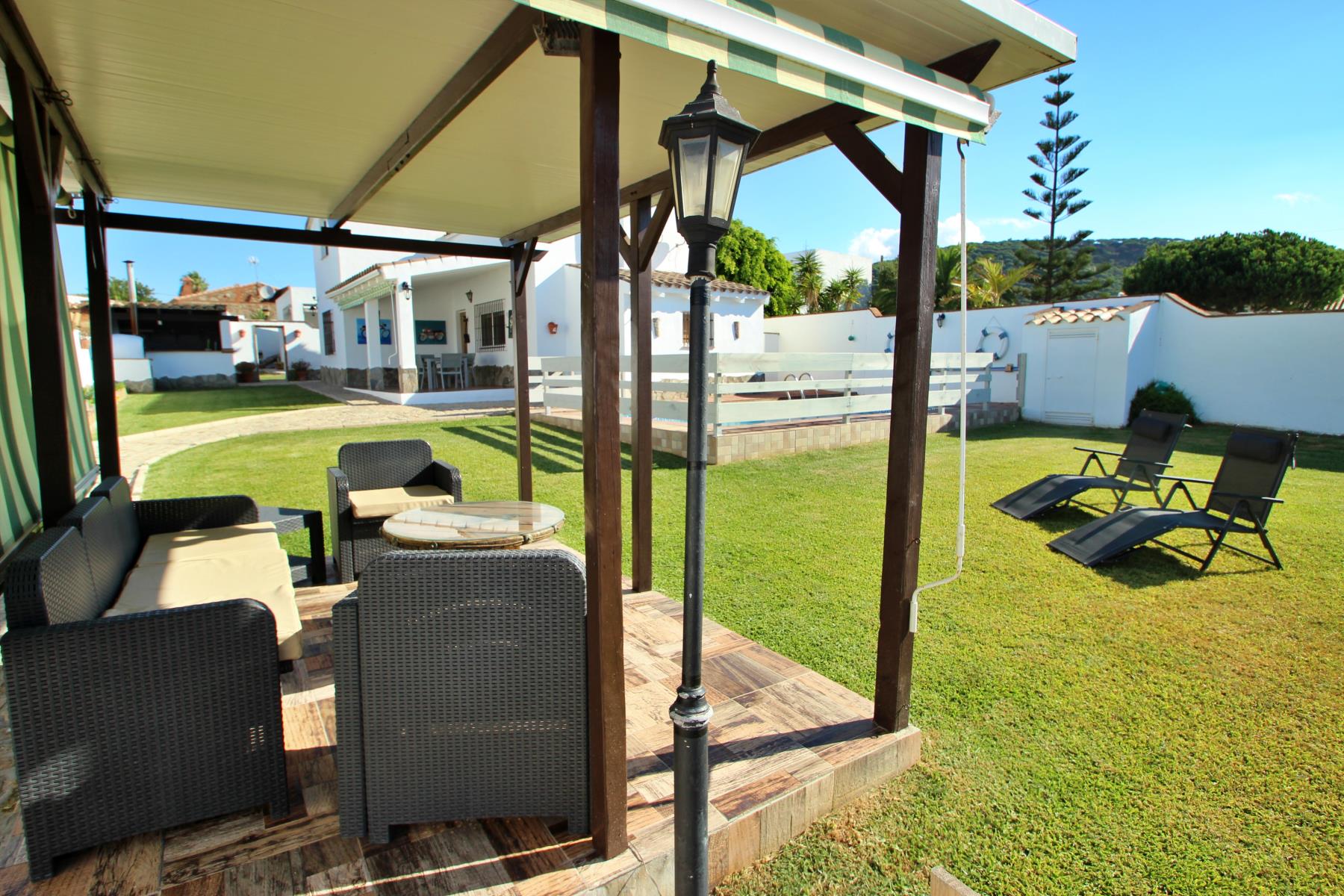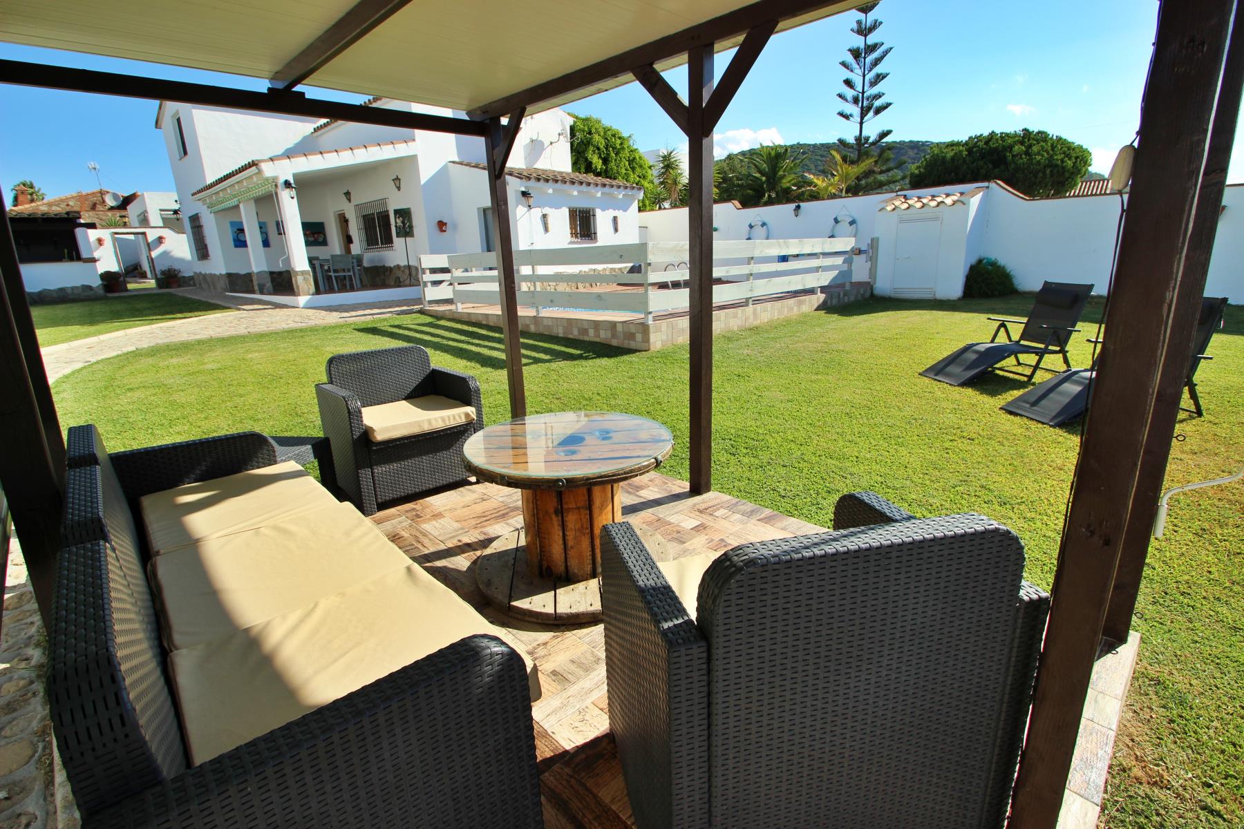 La Casa José y Conchi es una hermosa vivienda que destaca por su amplia zona exterior. La propiedad dispone de una piscina privada (6x3,50) rodeada de un extenso jardín, un entorno ideal para relajarse en plena naturaleza. Junto al jardín se encuentra una acogedora zona chill out y varias tumbonas, perfectas para disfrutar del sol.