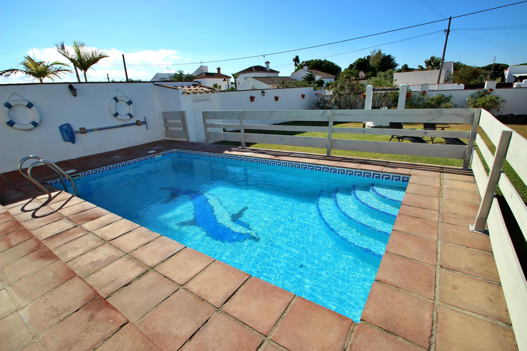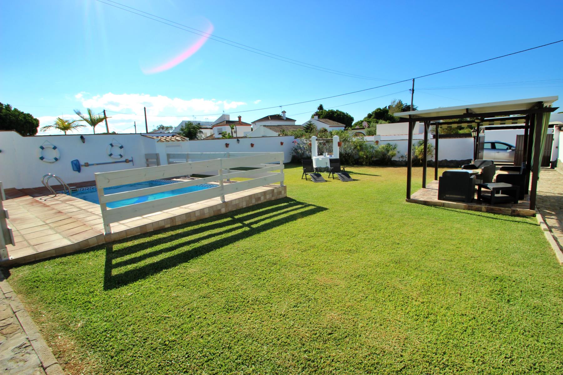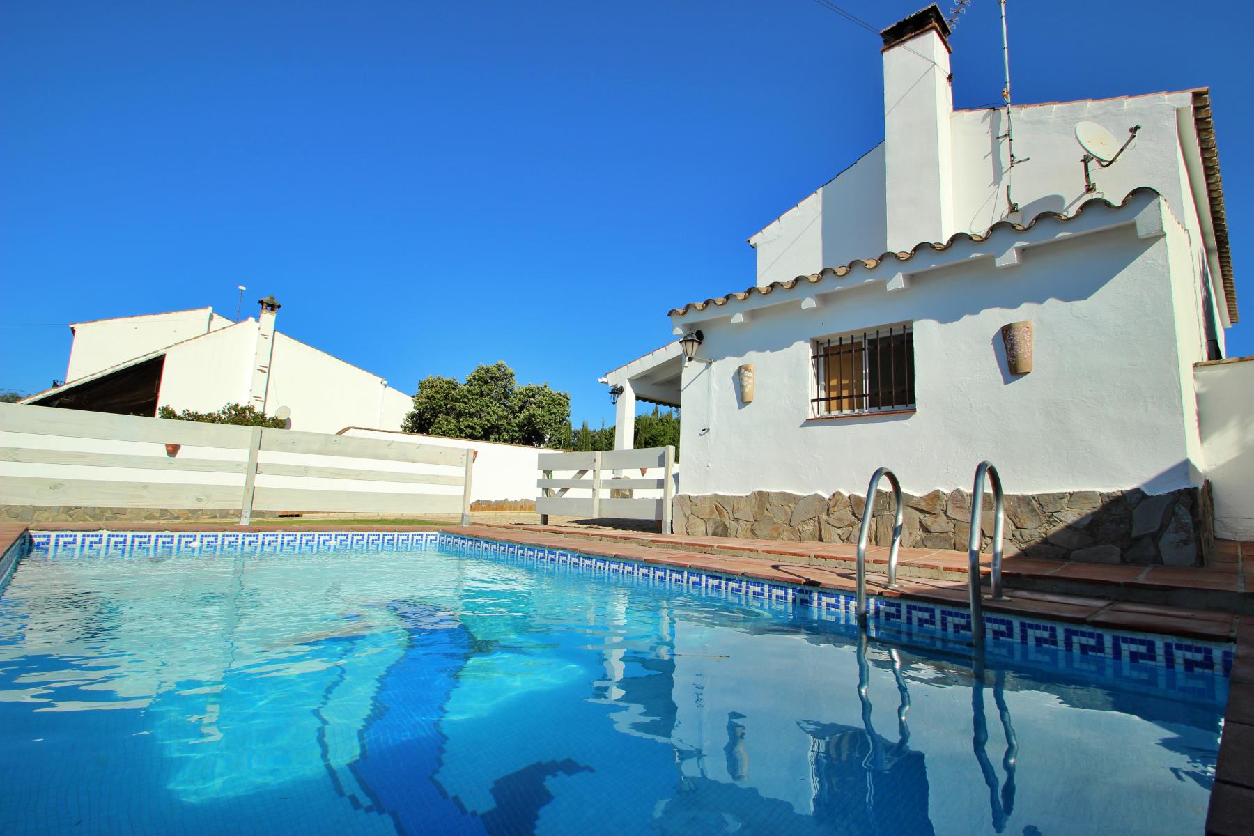 La Casa José y Conchi es una hermosa vivienda que destaca por su amplia zona exterior. La propiedad dispone de una piscina privada (6x3,50) rodeada de un extenso jardín, un entorno ideal para relajarse en plena naturaleza. Junto al jardín se encuentra una acogedora zona chill out y varias tumbonas, perfectas para disfrutar del sol.
