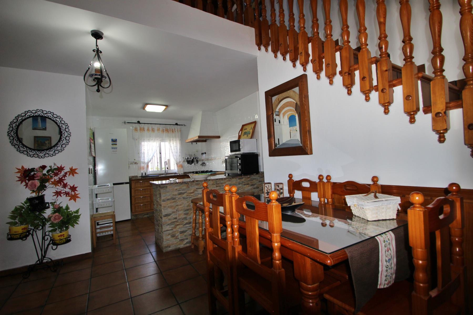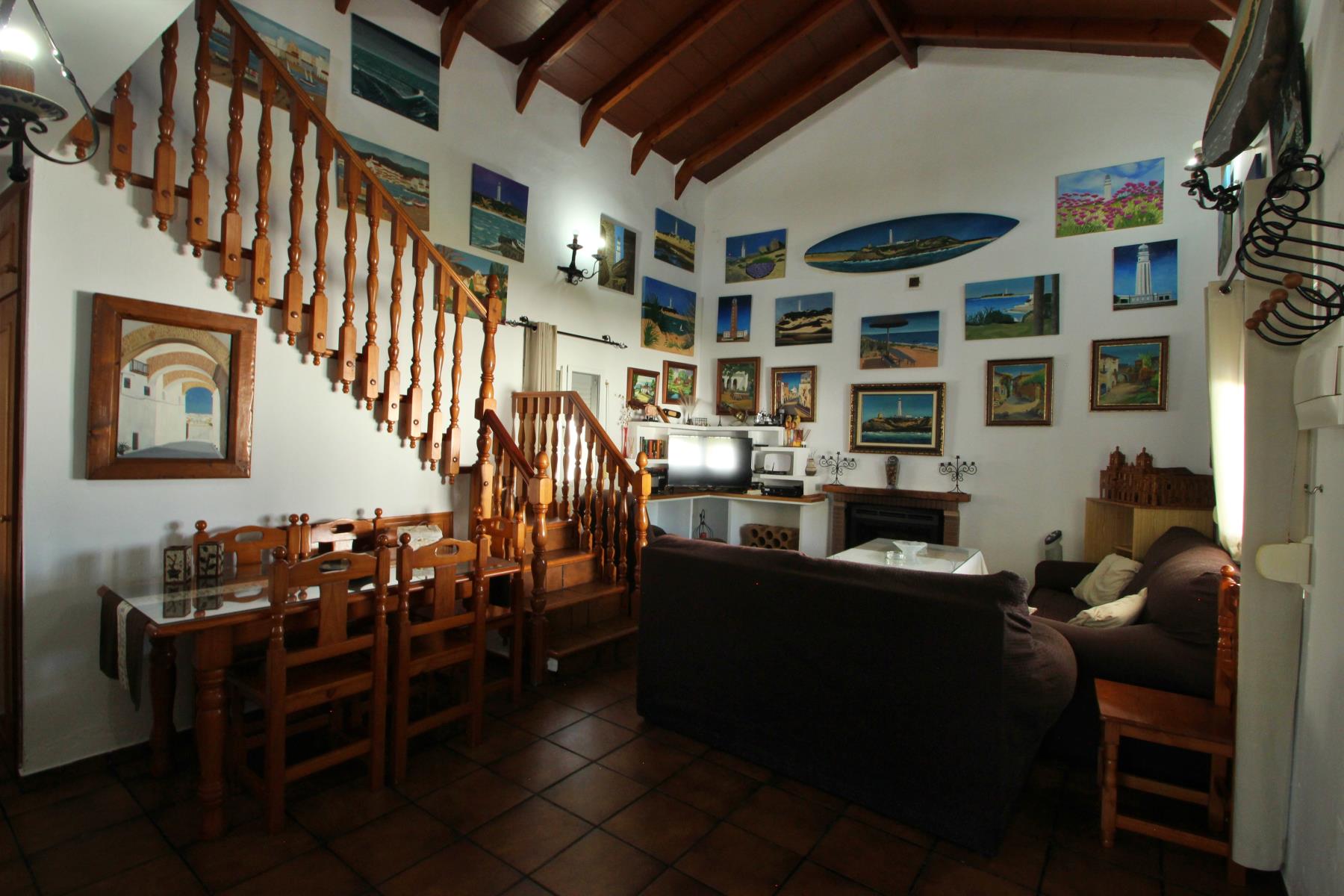 La vivienda está distribuida en dos plantas. En la planta baja se encuentra el salón, equipado con cómodos sofás, chimenea y una mesa de comedor. También hay wifi disponible.