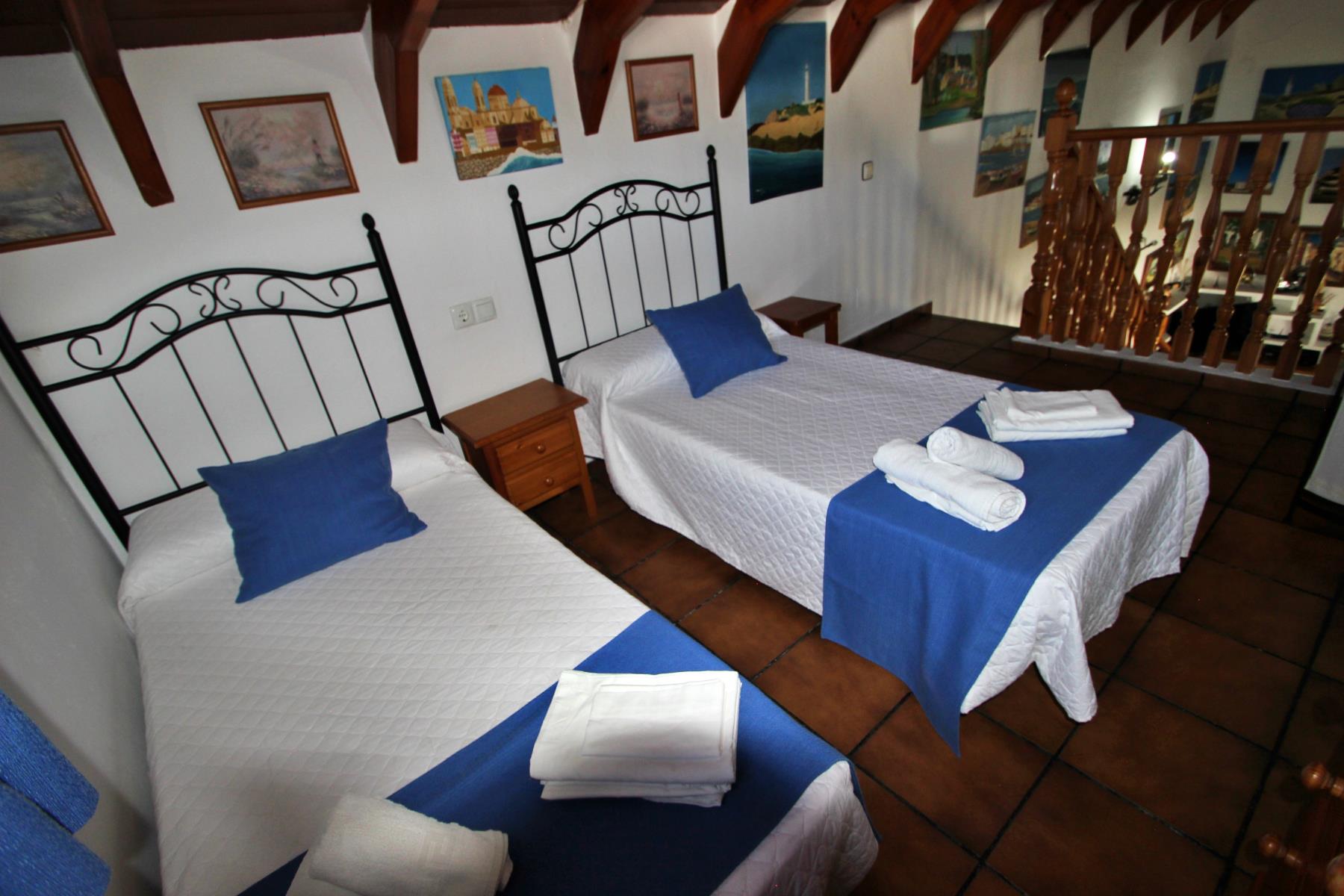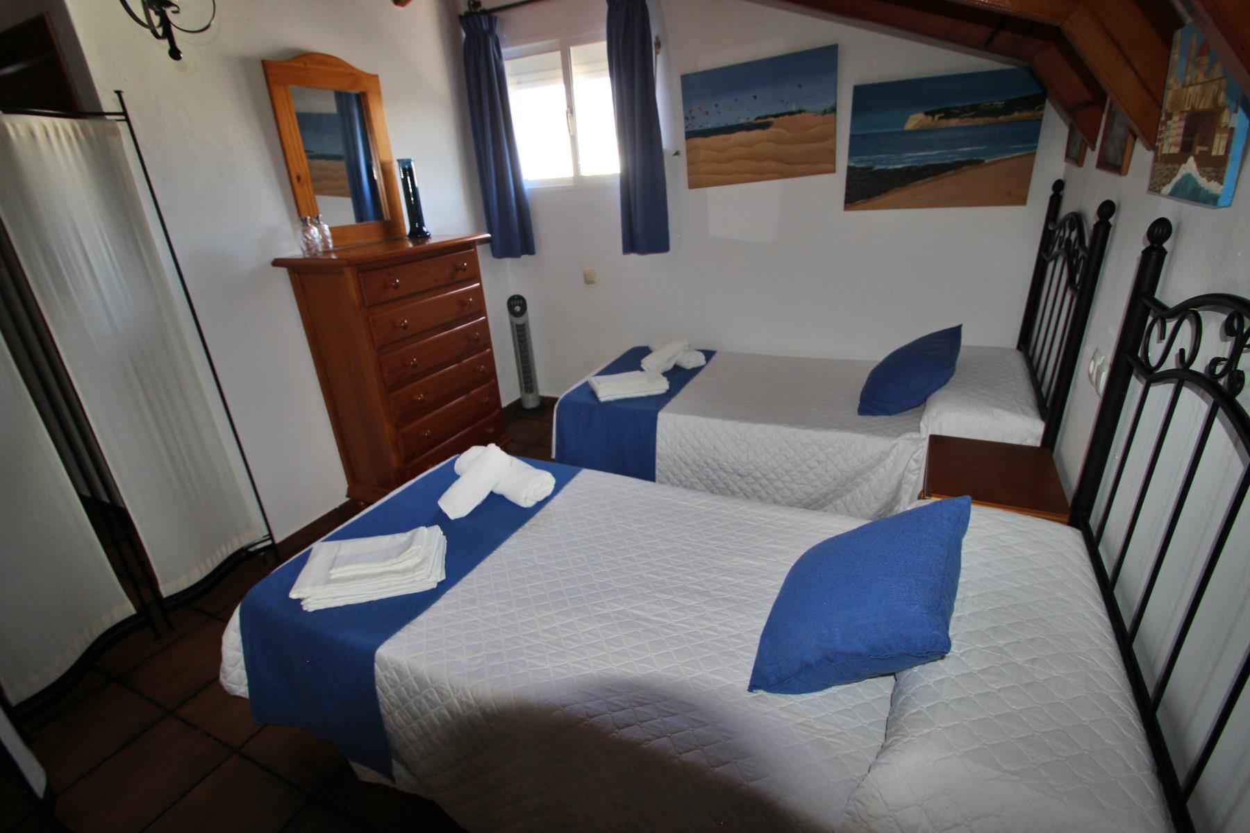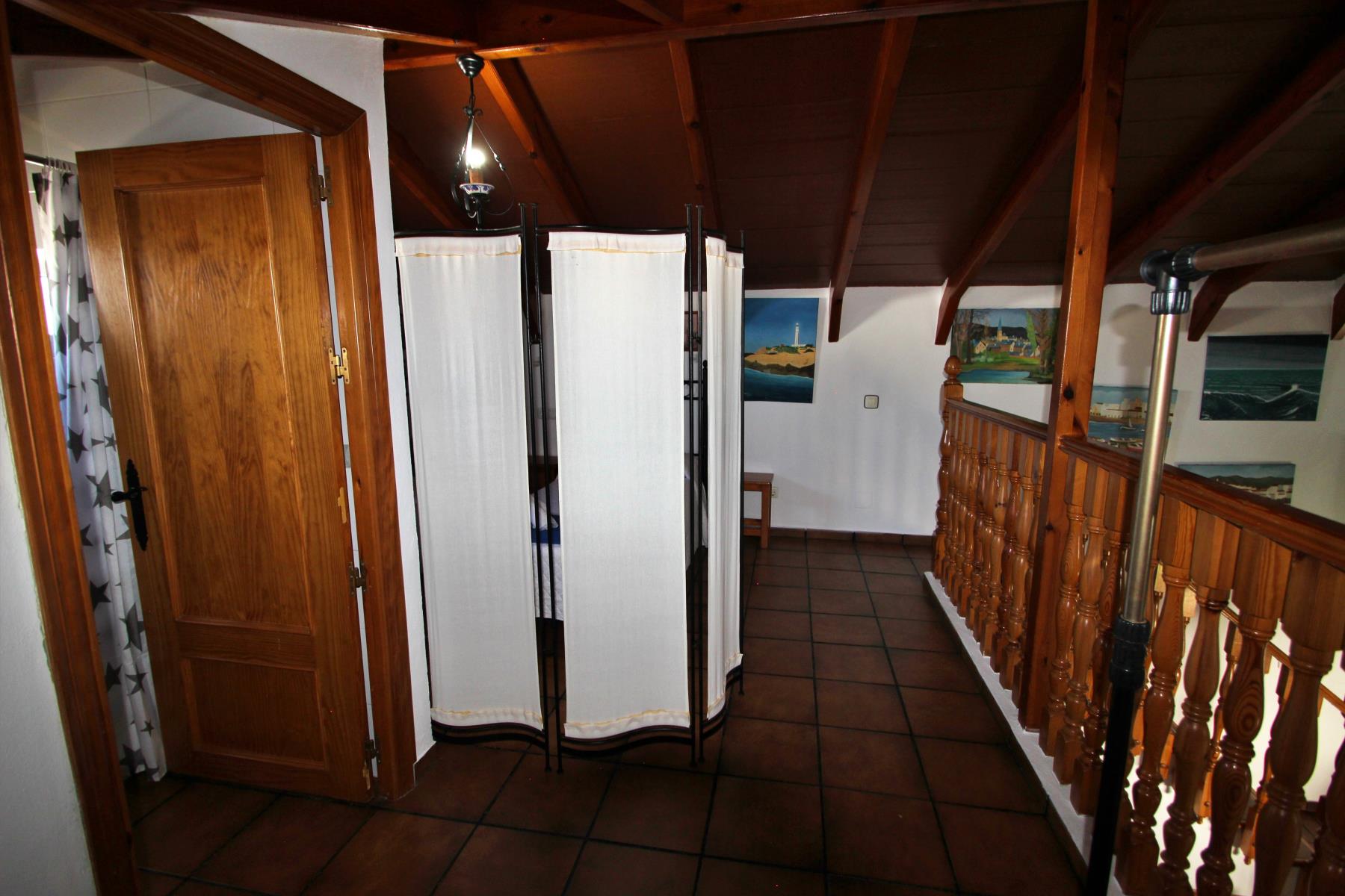 Unas cómodas escaleras conducen a la primera planta, donde se encuentra un espacio con dos camas individuales y un segundo dormitorio con cama de matrimonio. En esta planta también hay un segundo baño, equipado con ducha.
